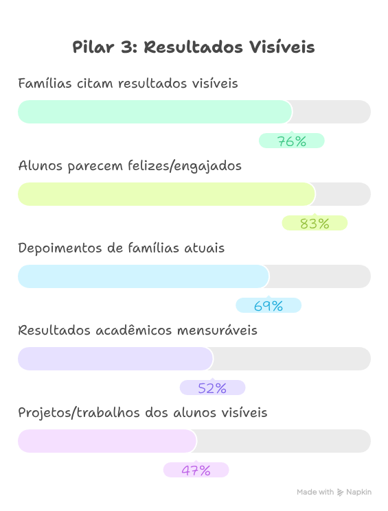 PILAR 3: RESULTADOS VISÍVEIS (citado por 76% das famílias)